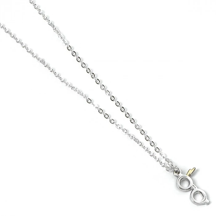 Ce collier a une chaîne à maillons plaqué argent avec les lunettes de Harry Potter et un pendentif éclair. Ce collier est livré sur un emballage officiel de marque Harry Potter. La chaîne mesure 40 cm avec une rallonge de 5 cm.