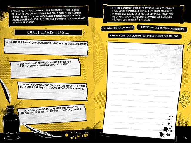 Inspiré des films Harry Potter, ce livre d’activités se glisse dans toutes les poches et permet d’exprimer sa créativité tout en replongeant dans l’univers magique du monde des sorciers. Dessiner son propre Patronus, établir des pronostics pour le prochain match de Quidditch, faire gagner des points à sa maison, redécouvrir les qualités nécessaires pour appartenir à Gryffondor, Serdaigle, Poufsouffle ou Serpentard : cet ouvrage ludique propose une mine d’activités et invite le lecteur à revivre les moments mythiques de la saga.