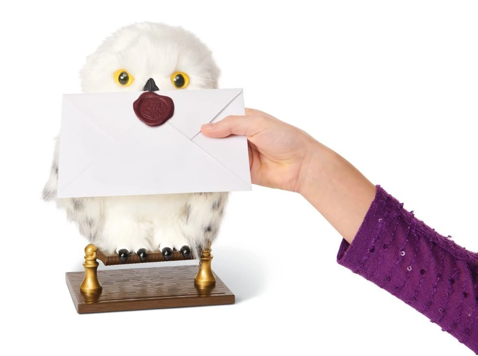 Le jeu comporte la peluche Hedwige enchantée, un perchoir, une enveloppe et un peigne pour lui brosser ses poils tout doux. Prenez soin de votre magnifique petit hibou et il vous livrera votre courrier !