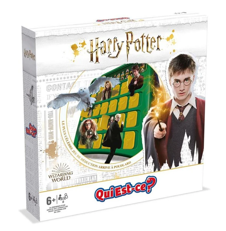 Les héros de la saga Harry Potter vous attendent dans cette édition spéciale du célÚbre jeu Qui Est-ce ? Arriverez-vous à découvrir le personnage mystÚre avant votre adversaire, sans vous servir de la magie ? Pour 6 ans et +.