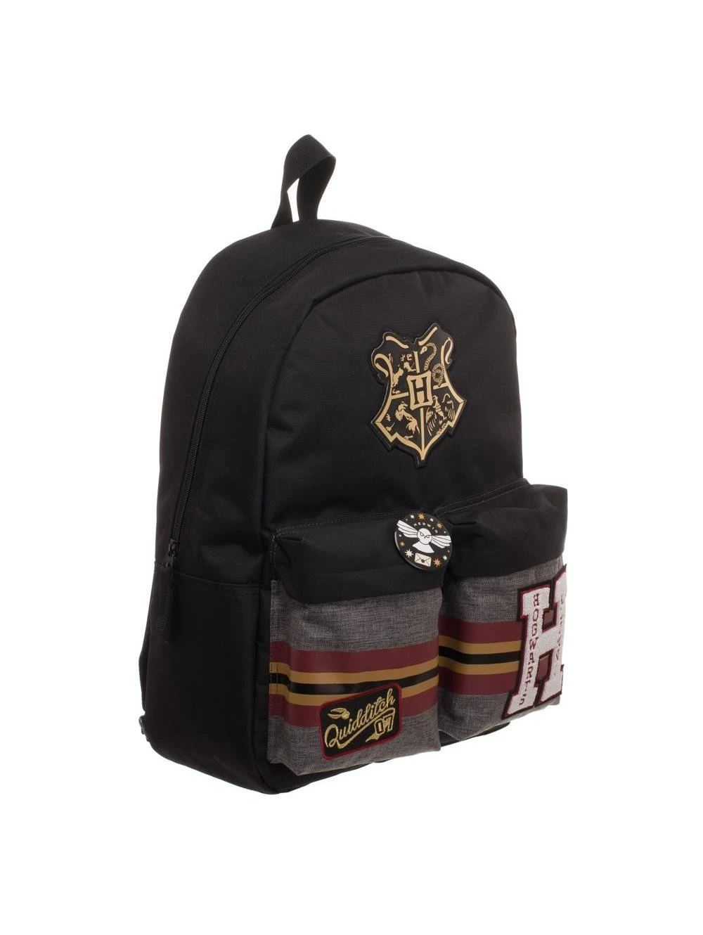 Harry Potter Patches Backpack with Pin Badge, superbe sac à dos en polyester muni d’écussons et d’un badge Hedwige.