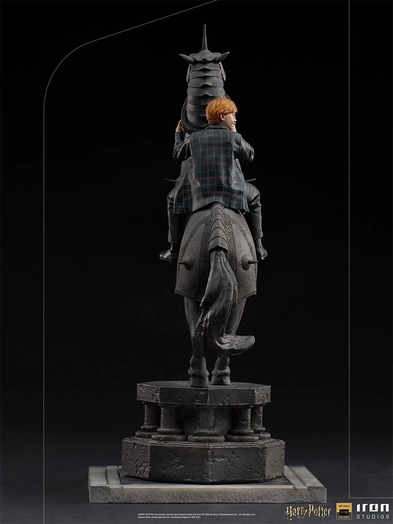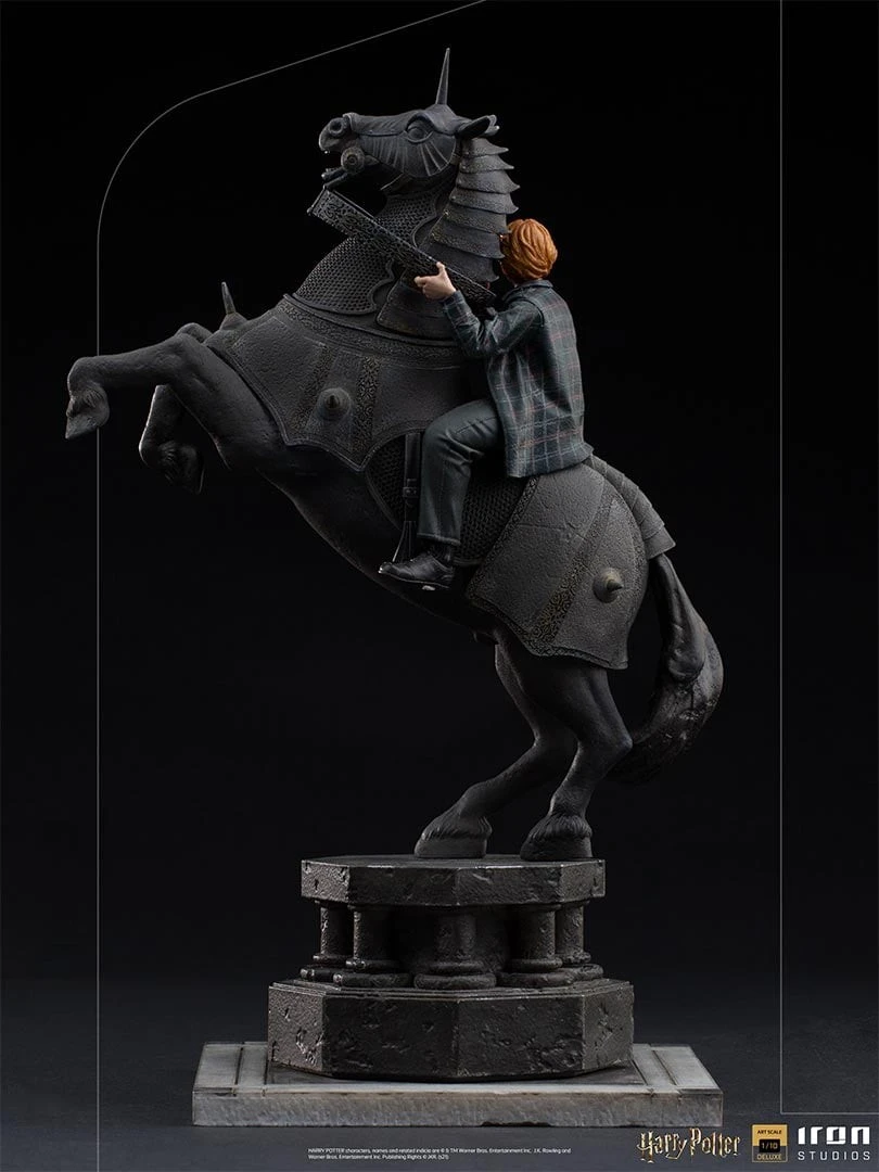 Échec et mat d’Iron Studios avec Ron dans une nouvelle statue à collectionnerMonté sur un énorme cheval noir en armure de combat, représenté par une statue qui fait partie d’un jeu d’échecs réaliste, le petit garçon aux cheveux roux, Ronald Bílius Weasley, mieux connu sous le nom de Ron ou Rony, regarde habilement le paysage devant lui , analysant toutes les possibilités de gagner les échecs mortels du sorcierVersion enchantée du jeu de plateau classique, dans Wizard’s Chess, les pièces se déplacent d’elles-mêmes lorsqu’elles reçoivent un ordre du joueur, et de manière barbare, elles détruisent la pièce vaincue de l’adversaire. Ron, qui est le meilleur ami de Harry Potter et Hermione Granger, a une grande connaissance des échecs, et cette compétence était d’une grande importance dans « Harry Potter à l’École des Sorciers », dans la scène qui est maintenant reproduite dans la « Ron Weasley at the Wizard Chess Deluxe Art Scale 1/10 », ajoutant un autre moment historique de la saga dans la lignée des statues de Harry Potter, d’Iron Studios.